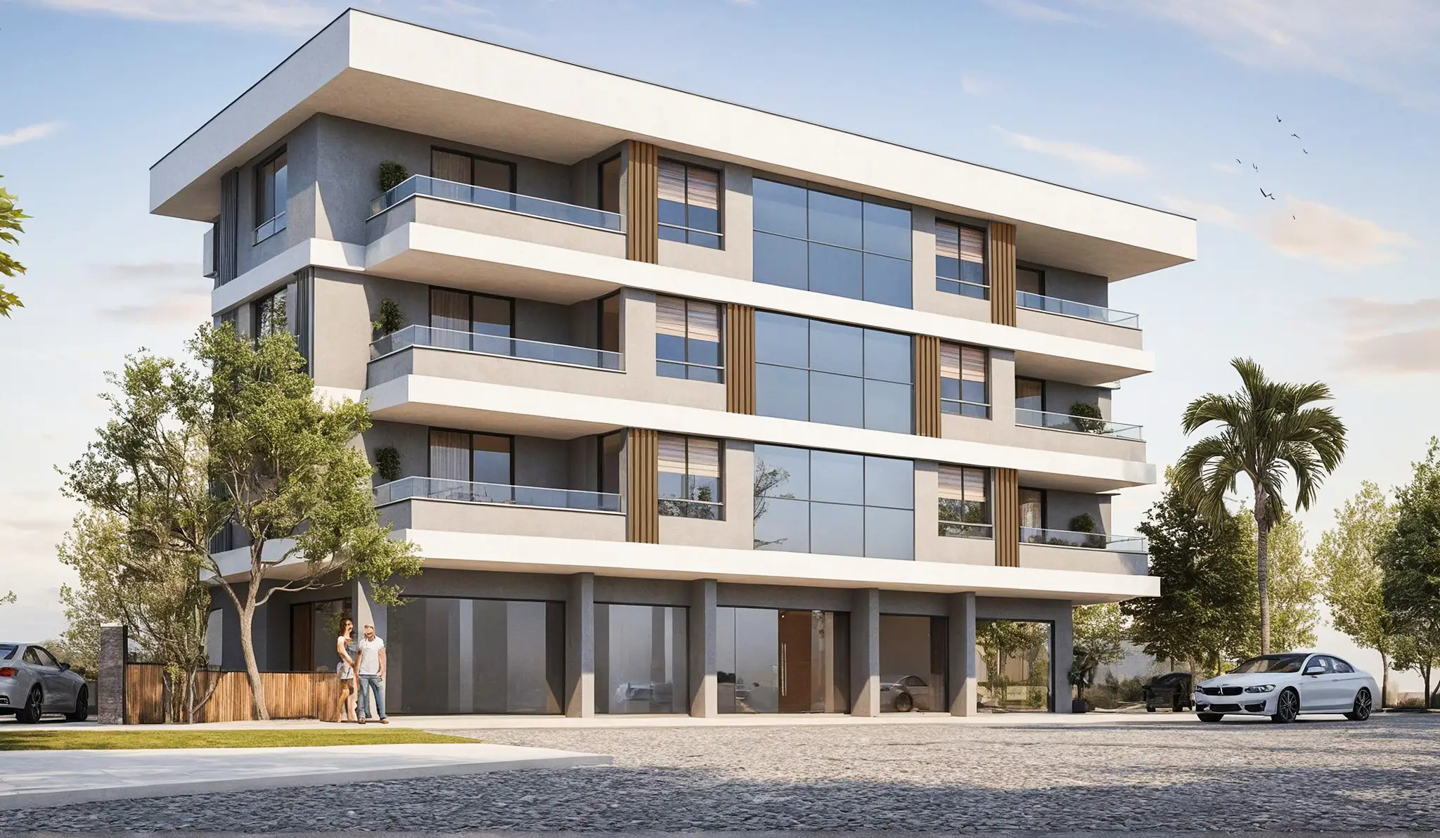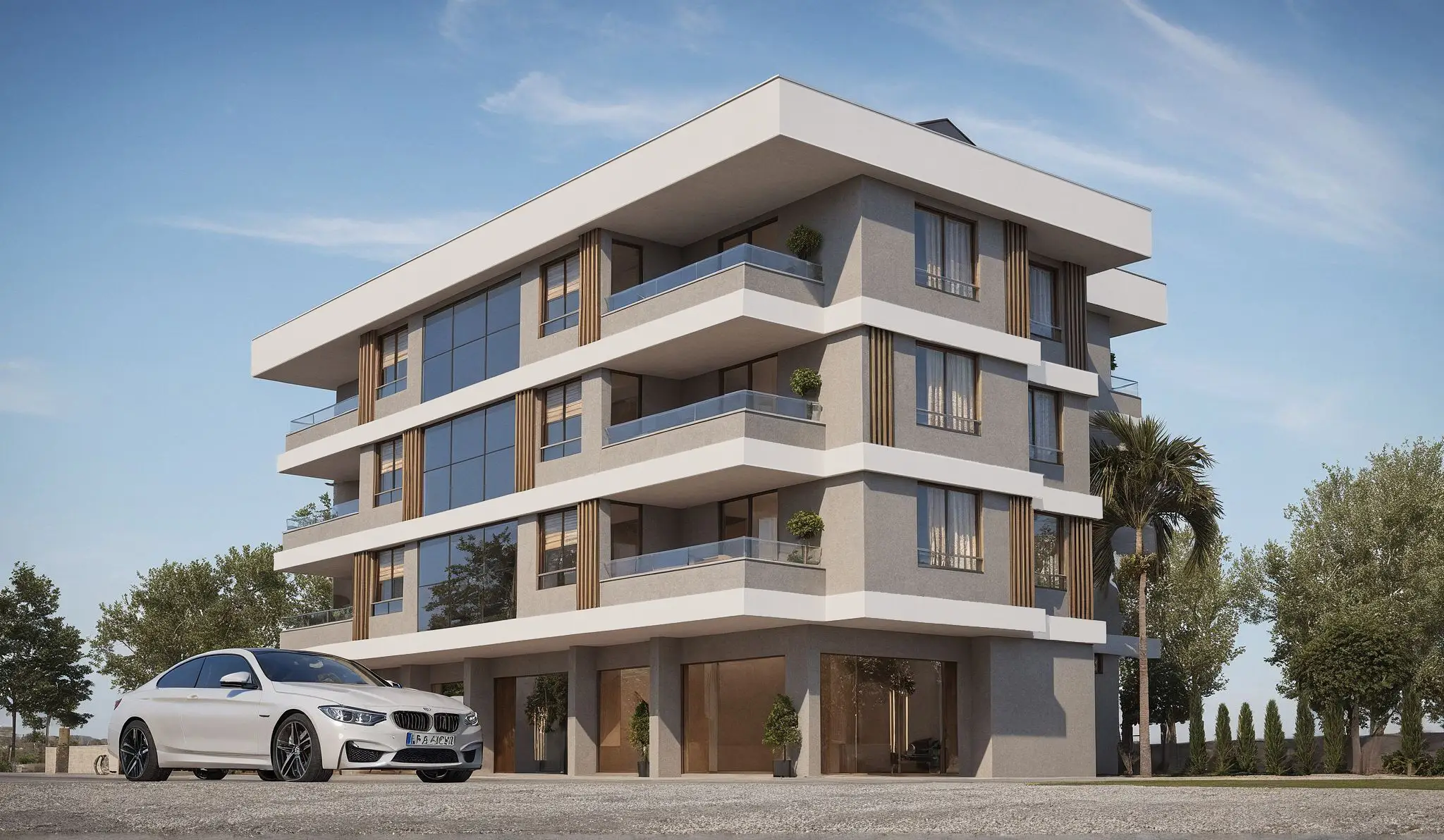 Dört katlı mimarisiyle yatay yapılaşma ilkelerine uygun olarak tasarlanan bu yapı; estetik cephe detayları, sade renk paleti, ve doğal doku uyumuyla zamansız bir görünüm sunmaktadır. Geniş cam yüzeyler ve köşe balkon tasarımları sayesinde tüm yaşam alanlarında maksimum gün ışığı ve ferahlık hedeflenmiştir.
